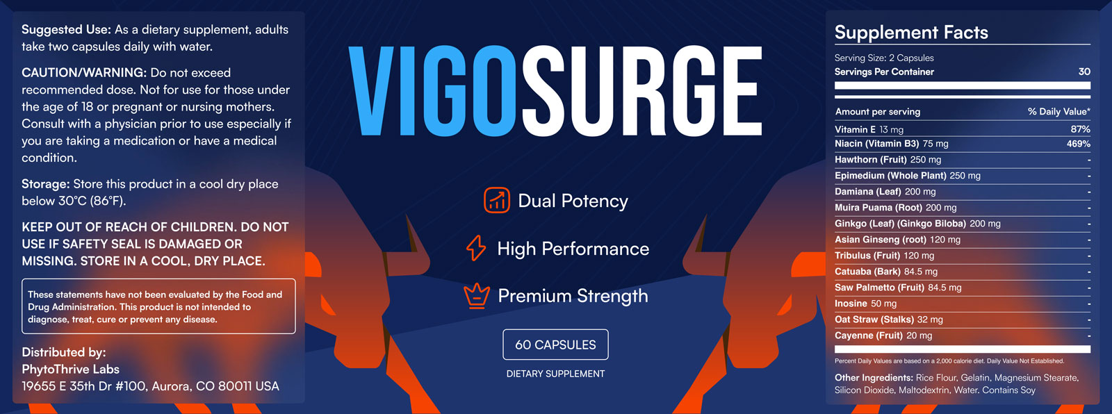 To view the full list of ingredients of VigoSurge, please check the product label below.